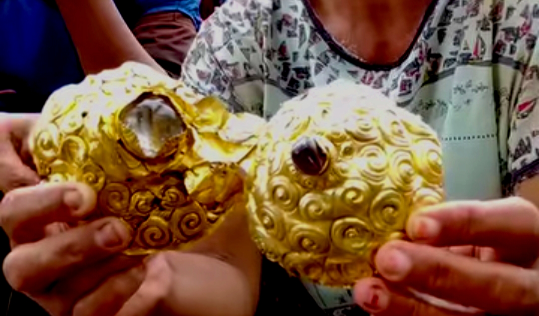 Karyawan perkebunan kelapa sawit PT PT Golden Blossom Sumatra (GBS yang berlokasi di Desa Prambatan Kecamatan Abab Kabupaten Penukal Abab Lematang Ilir (PALI), Sumatera Selatan dihebohkan dengan penemuan dua buah diduga barang antik berbentuk bunga ukuran besar atau mahkota berwarna emas dilengkapi hiasan batu yang terkubur di bawah pohon kelapa sawit PT GBS.