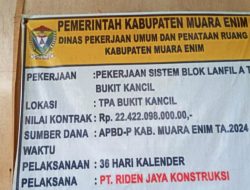 proyek pekerjaan Sistem Blok Lanfil A TPA Bukit Kancil Kabupaten Muara Enim, Provinsi Sumsel pada APBDP tahun anggaran 2024 yang sudah menelan dana APBD Kabupaten Muara Enim sebesar Rp.22.422.098.000, 00,- (Rp.22.4 Miliar).