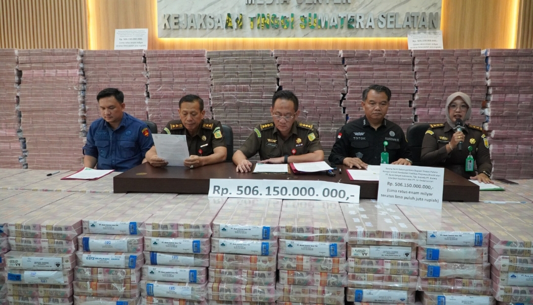 Tim Penyidik Bidang Tindak Pidana Khusus Kejaksaan Tinggi Sumatera Selatan telah melakukan penyitaan terhadap barang bukti berupa uang senilai Rp. 506.150.000.000., (lima ratus enam milyar seratus lima puluh juta rupiah) dengan pecahan uang senilai Rp. 100.000., (seratus ribu rupiah) terkait Perkara Tindak Pidana Korupsi Pemberian Fasilitas Pinjaman/Kredit Dari Salah Satu Bank Plat Merah kepada PT. BSS dan PT. SAL.